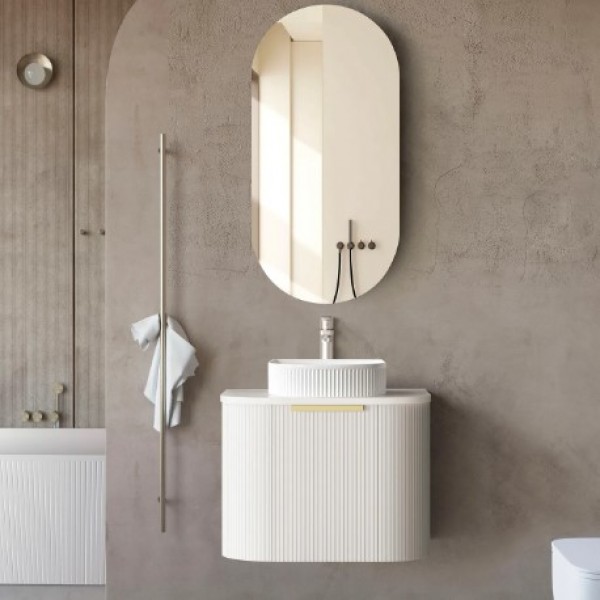 Bondi Fluted Satin White Wall Hung Curve Vanity 600 Cabinet Only