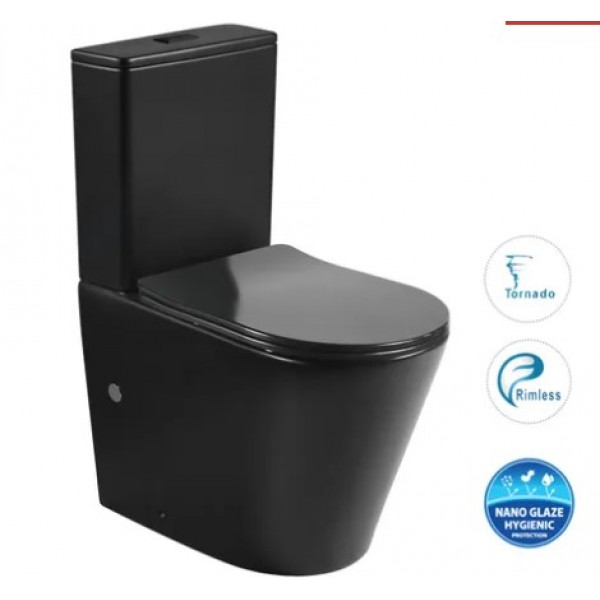Radiant Matte Black Tornado and Rimless Flush Technology Toilet Suite