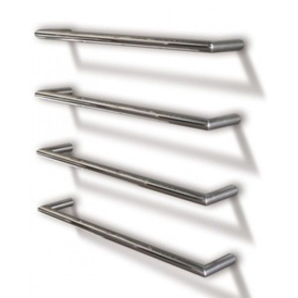 Individual round heated bars for the design and architectural market. The rails are installed in a "landscape" direction, one on top of the other to create an aesthetic floating 'ladder' feature in the bathroom.