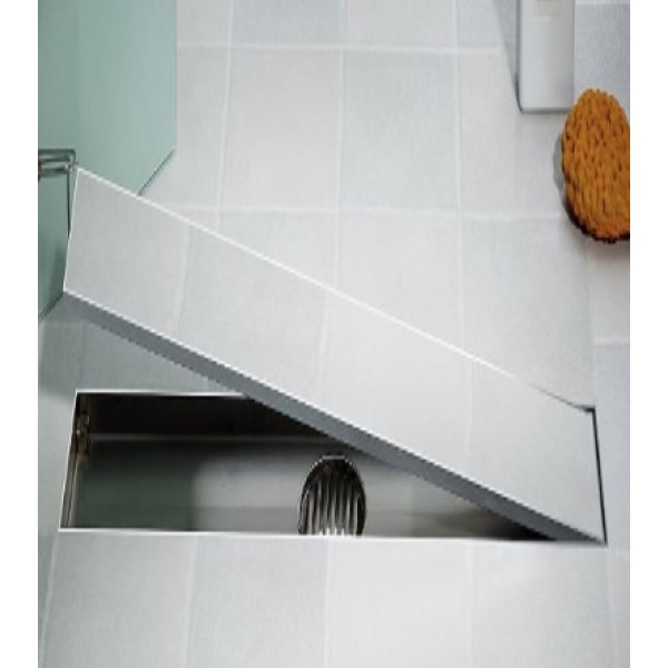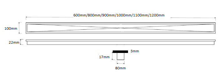 316 Marine grade stainless steel Mica Tile Insert Floor Waste 80mm Outlet 600 Long (No Pre-Cut Outlet)