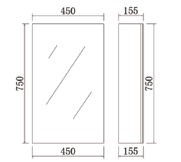 Size: Width: 450 mm x Height: 750 mm x Depth: 155 mm