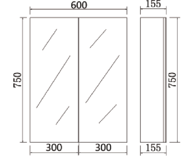 Size: Width: 600 mm x Height: 720 mm x Depth: 150 mm