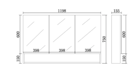Size: Width: 1200 mm x Height: 750 mm x Depth: 155 mm