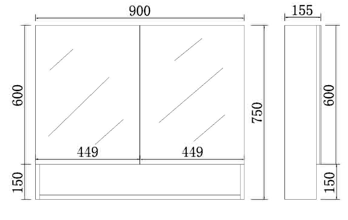 Size: Width: 900 mm x Height: 750 mm x Depth: 155 mm