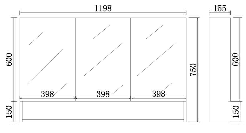 Size: Width: 1200 mm x Height: 750 mm x Depth: 155 mm