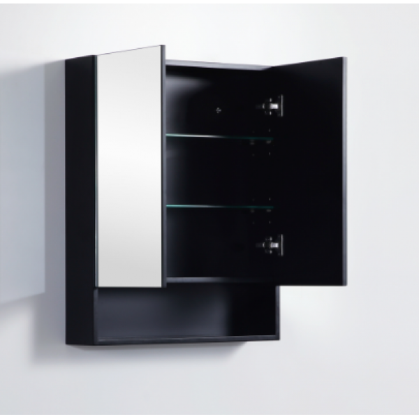 Matte Black PVC Pencil edge Mirror Cabinet With Undershelf