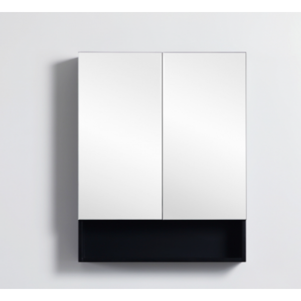 600 PVC Fremantle Matte Black Mirror Cabinet With Undershelf