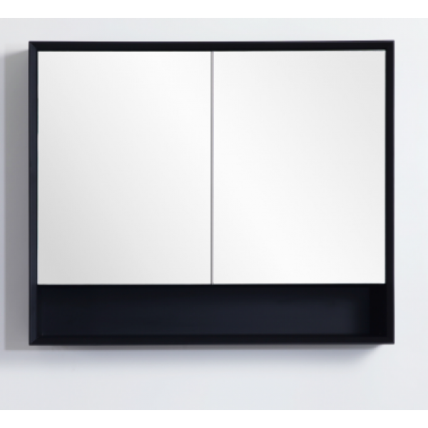 600 PVC Petra Matte Black Mirror Cabinet With Undershelf