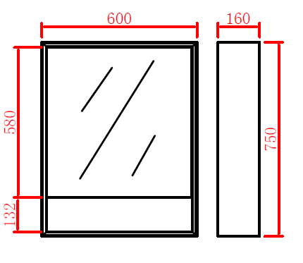Size: Width: 600 mm x Height: 750 mm x Depth: 155 mm