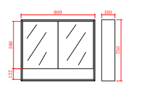 Size: Width: 900 mm x Height: 750 mm x Depth: 155 mm