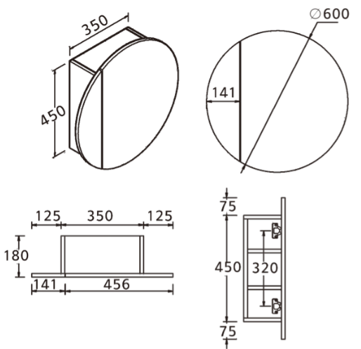 SC Round Matte White Shaving Cabinet 600 * 600