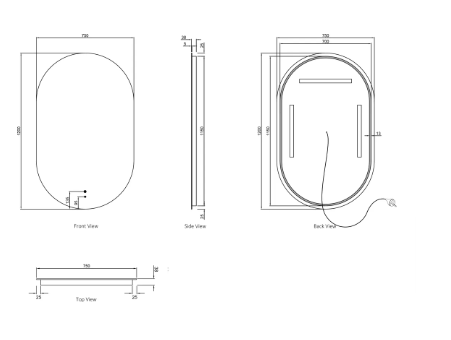 Noosa Led 1200(W)x750(H) Frameless Mirror - Install Horizontal or Vertical
