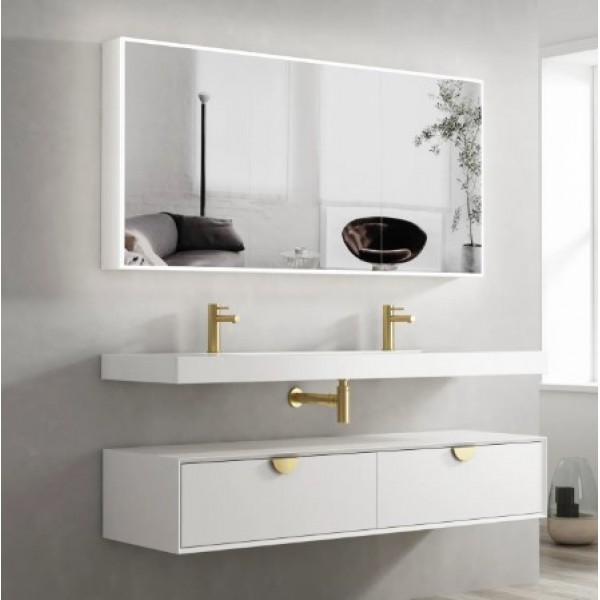 Moonlight Led Mirror Shaving Cabinet With Solid Surface stone Edge 1500