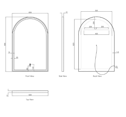 • Touch control sensor On/Off on mirror