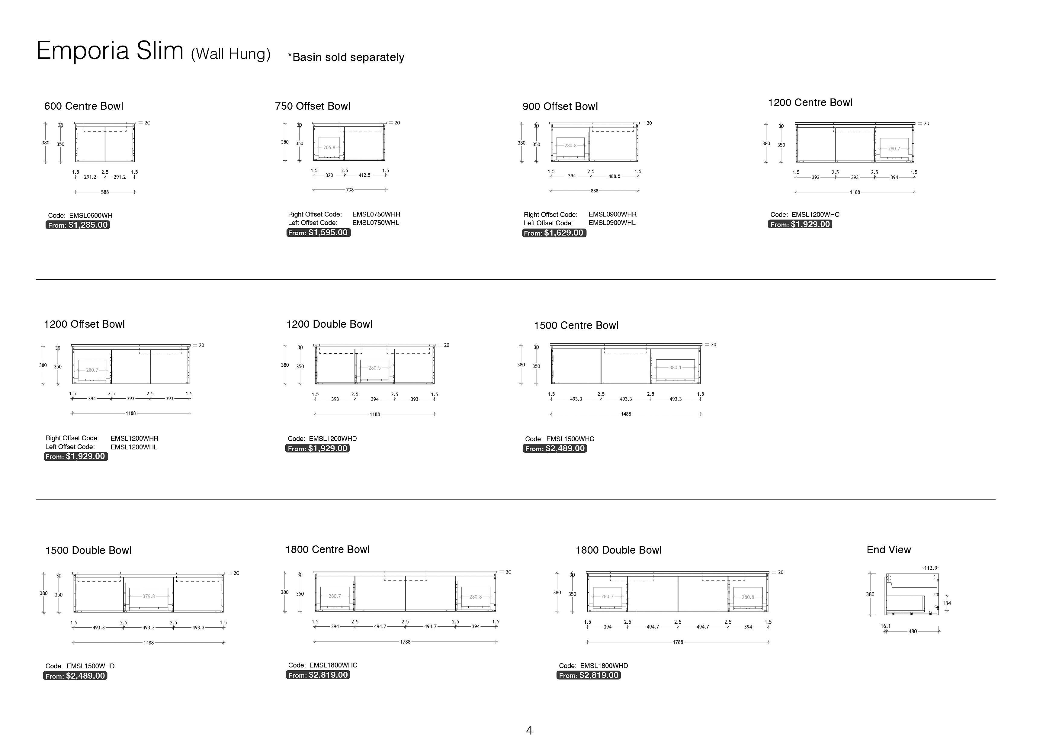 - Large range of basins available.