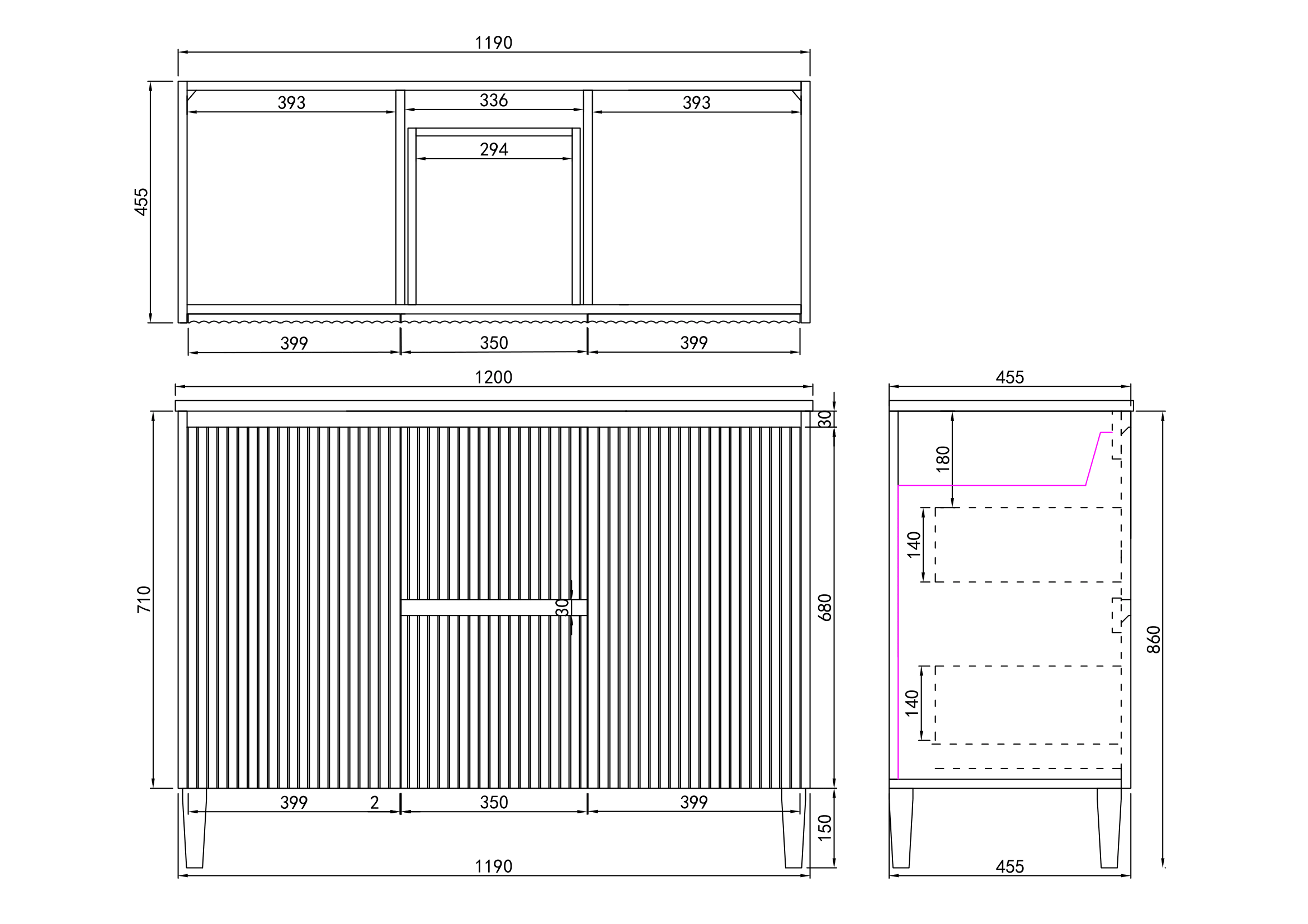 Brighton Matte Black Vanity 1200 Cabinet Only