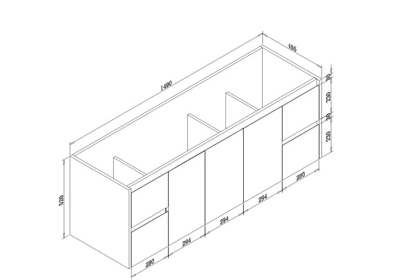 WH05-P1 PVC 1500 Wall Hung Vanity Cabinet Only