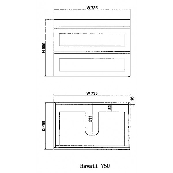 Haw-750 Matte White MDF Wall Hung Vanity Cabinet Only
