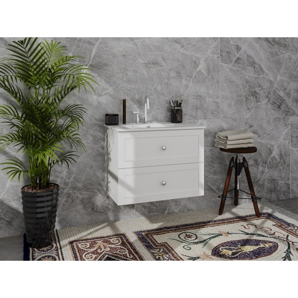 MW12 Matte White MDF Wall Hung Vanity Cabinet Only