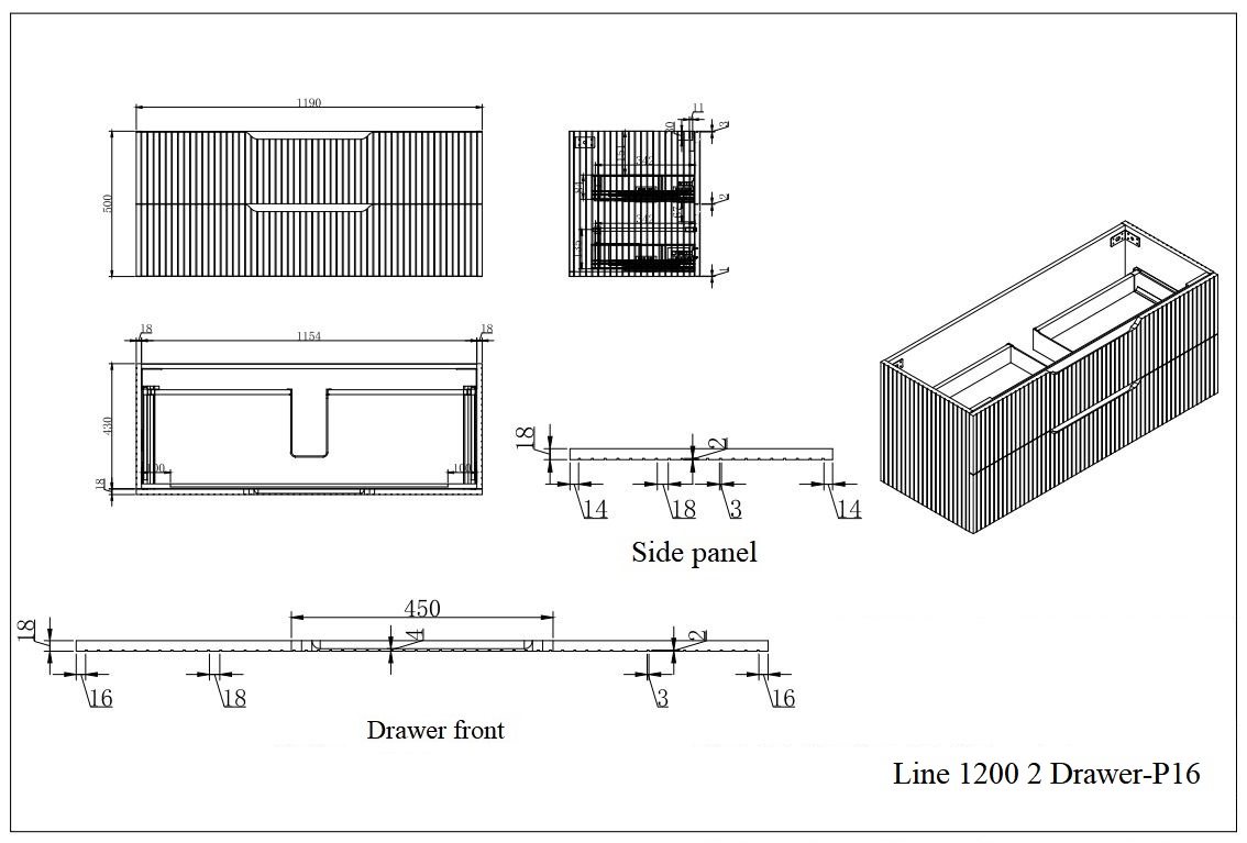 Line16-1200 Wall Hung Vanity Cabinet Only