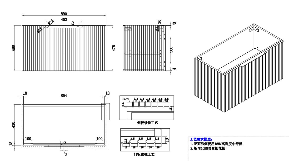 Line17-900 Wall Hung Vanity Cabinet Only