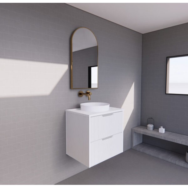 Bali Matte White fluted wall hung vanity 600 Cabinet Only