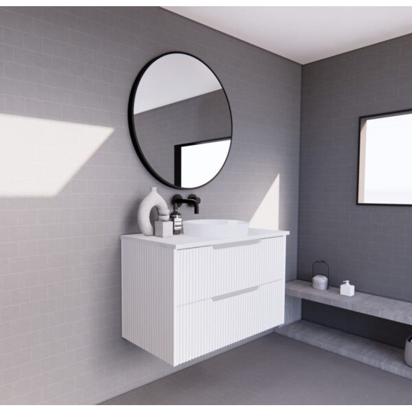 Bali Matte White fluted wall hung vanity 900 Cabinet Only