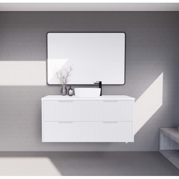 Bali Matte White fluted wall hung vanity 1200 Cabinet Only