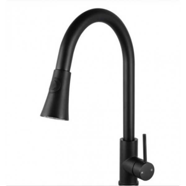 Aqua Matte Black Round Pull Out Kitchen Sink Mixer