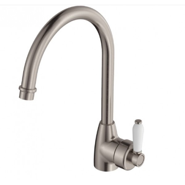 Eleanor Gooseneck Sink Mixer Brushed Nickel With White Ceramic Handle