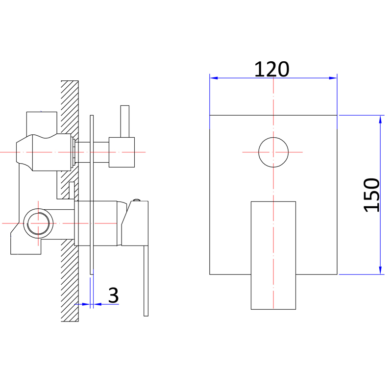 Square Shower Bath Wall Mixer With Diverter