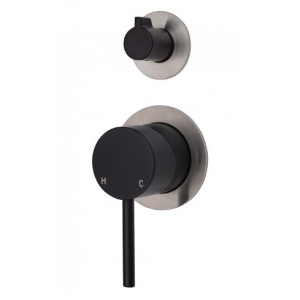 Kaya Wall Diverter Mixer, Matte Black, Small Round Brushed Nickel Plates