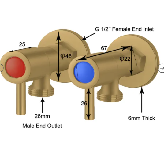 Nor-WST16.04+WST16.04 Round Brushed Gold Washing Machine Taps