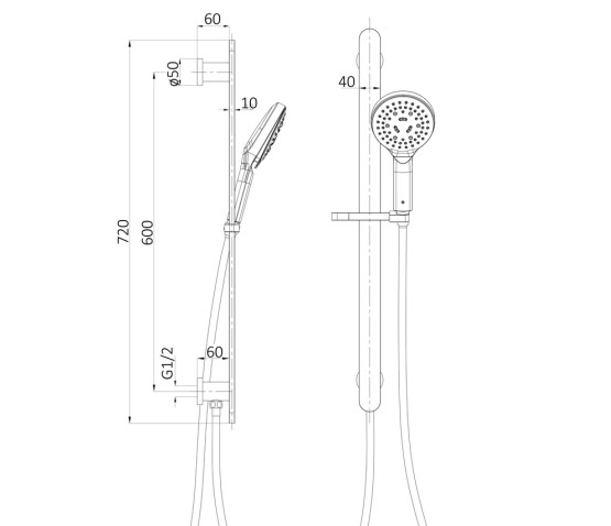 Kara Chrome Round Hand Shower On Rail With Water Inlet
