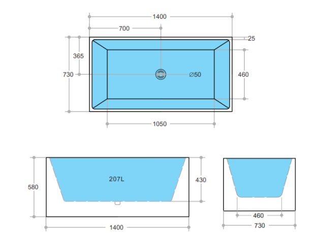 Theo Back To The Wall Bath 1400