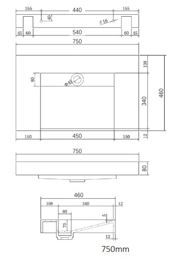 Basin Overall depth 750mm