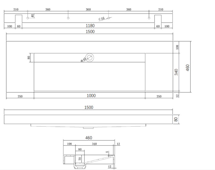 304 Stainless Steel Moonlight Wall Hung Basin Conceal Brackets, Dimension 400x82x35mm