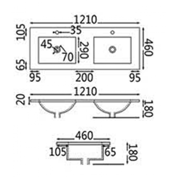 Dimensions: 1210 x 460 x 180 mm