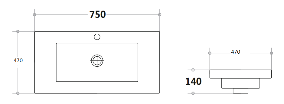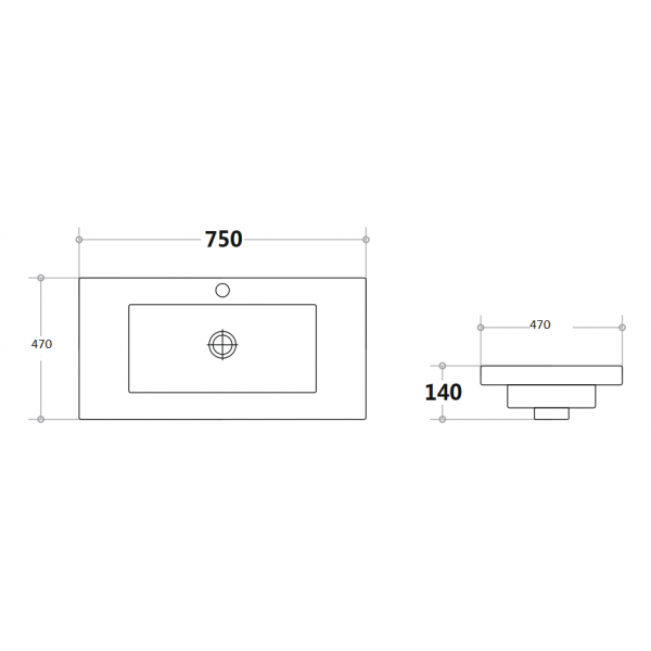 Square Poly-Marble 750 Basin-TOP