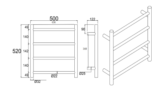 Aqua Chrome Round 4 Bars Heated Towel Rail