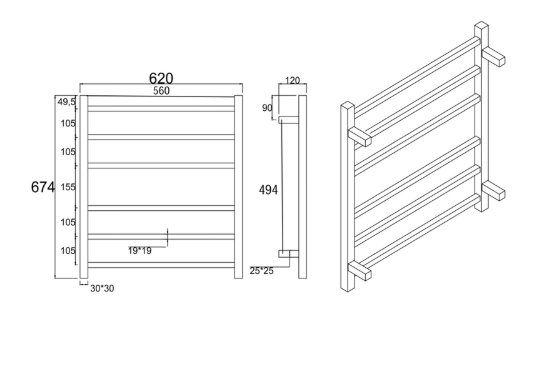 Aqua Gun Metal Square 6 Bars Heated Towel Rail