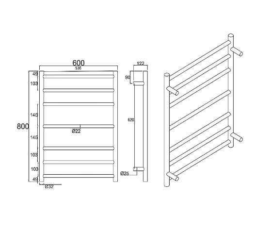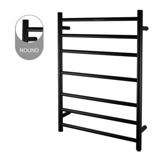 Aqua Matte Black Round 7 Bars Heated Towel Rail