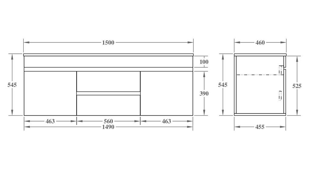 Evie White Oak Wall Hung Vanity 1500 Cabinet Only