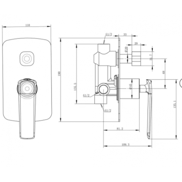 Wall Mounted Square Shower Diverter