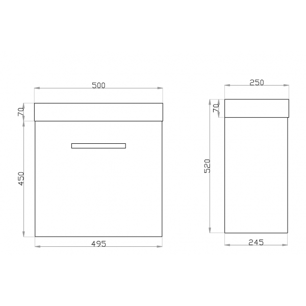Berge Matte White Mini Wall Hung 500 Vanity Cabinet Only