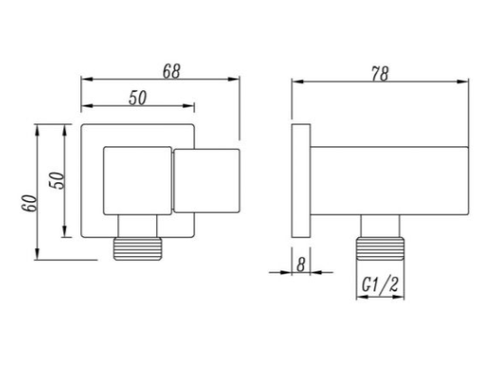 -Square Brass Handheld Shower Head w/ Wall Connector