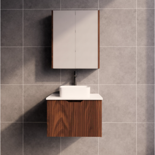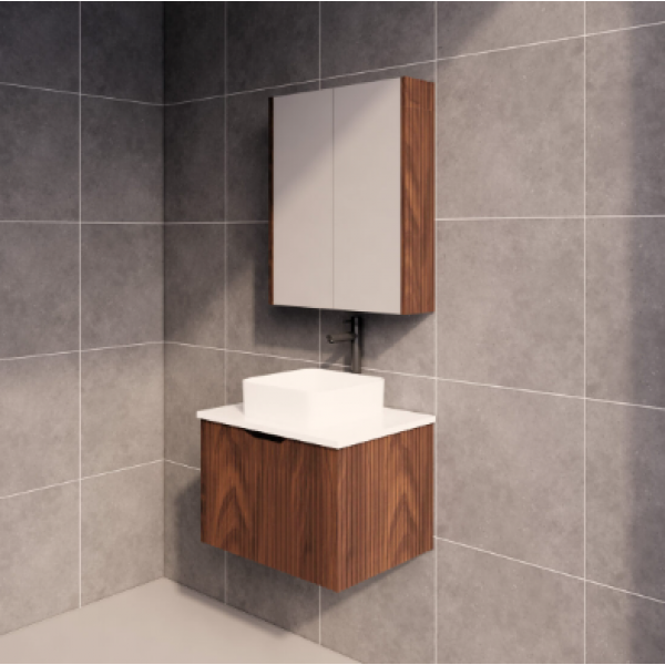 Vienna Brown oak fluted wall hung vanity 600 Cabinet Only